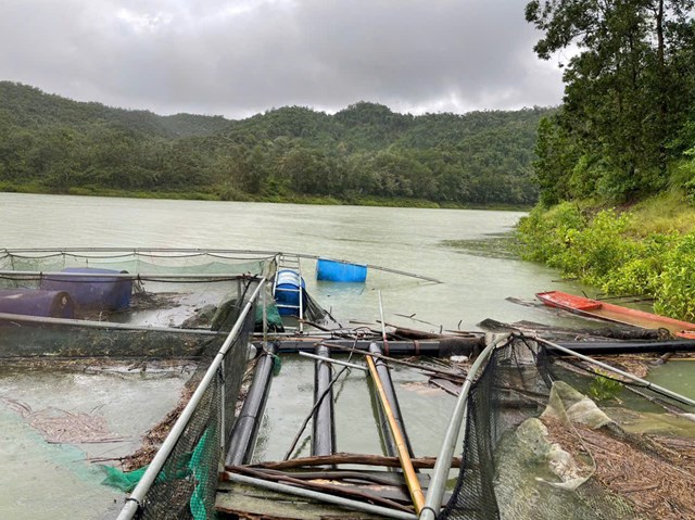 Những người dân nuôi cá lồng bè ở đập Ngàn Trươi bị bão đánh tan tành, toàn bộ cá bị cuốn trôi theo dòng nước