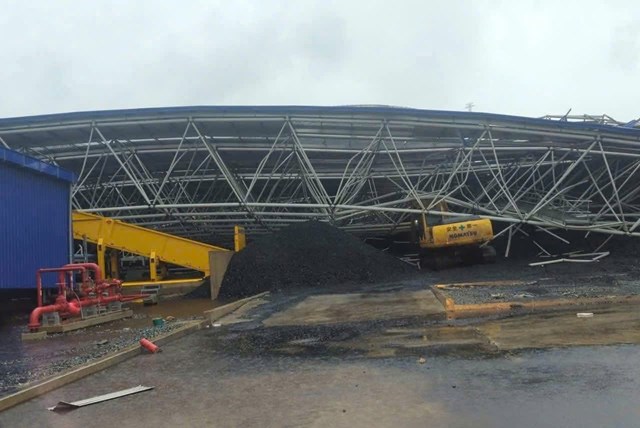 Toàn bộ hệ thống mái kho than của Nhà máy Nhiệt điện Vũng Áng 2 bị bão đánh đổ sập