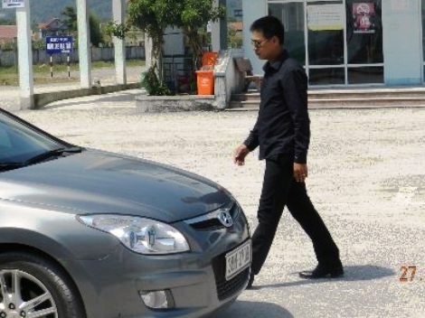 Đang tác nghiệp cùng mọi người, PV Trí Thức trao đổi thông tin với thượng úy Nguyễn Sỹ Hoàn - Tổ trưởng trạm cân về vấn đề tháo biển số của xe tải trước đó tại quán ăn cách trạm cân khoảng 1km. Làm việc xong đang đứng trong khu vực bến xe khách gần trạm cân, có một đối tượng mặc thường phục màu đen, đeo kính đen, đi xe ô tô mang BKS: 38N - 3709 tới dừng xe ngay tại trạm cân và xuống tiếp xúc, nói chuyện với lực lượng chức năng đang làm nhiệm vụ.