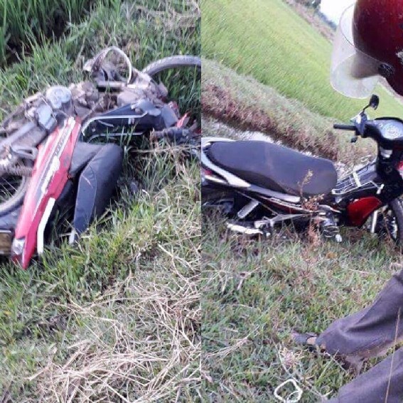 Vụ tai nạn khiến 3 người thương vong, 2 chiếc xe máy lao xuống ruộng
