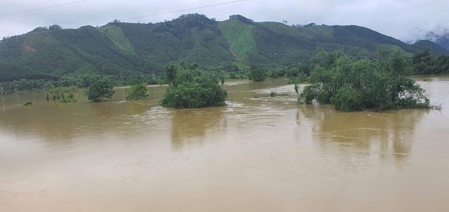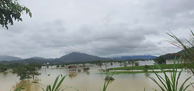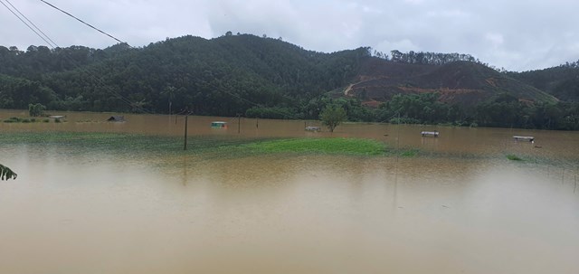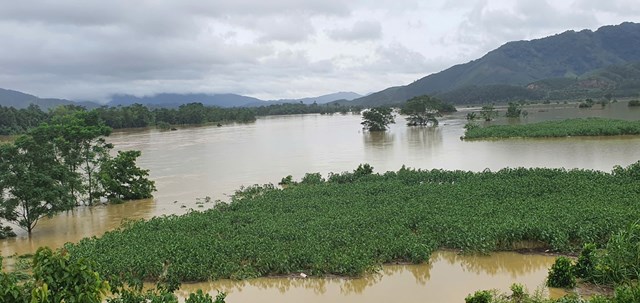 Một diện tích lớn sắn của người dân xã Sơn Tây cũng bị nhấn chìm trong biển nước.