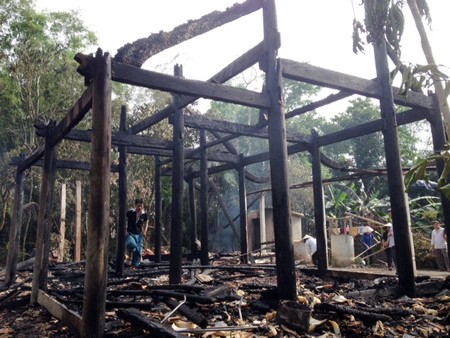 Mặc dù được sự giúp đỡ tận tình của hàng xóm nhưng sau khi ngọn lửa được khống chế thì ngôi nhà chỉ còn trơ lại những khung gỗ.
