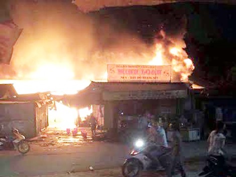 Chỉ trong vòng 30 phút, lửa đã bao trùm toàn bộ đình chợ. Để tránh tình trạng lửa bén lan sang các gian hàng bên ngoài, các tiểu thương đã nhanh chóng ôm hàng hóa của mình gửi vào các hộ dân xung quanh.