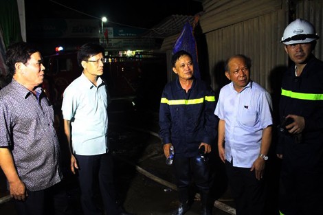 Lãnh đạo huyện Vũ Quang xuống hiện trường đám cháy ngay trong đêm