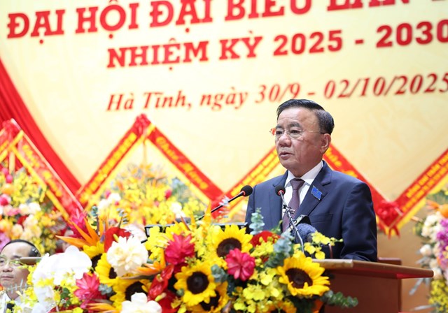 Phát biểu chỉ đạo tại Đại hội, ông Trần Cẩm Tú - Thường trực Ban Bí thư, thay mặt Bộ Chính trị, Ban Bí thư và Tổng Bí thư Tô Lâm, gửi lời chia sẻ sâu sắc tới Đảng bộ, chính quyền và Nhân dân Hà Tĩnh trước những thiệt hại nặng nề do cơn bão số 10 gây ra vừa qua. Đồng chí bày tỏ tin tưởng Hà Tĩnh sẽ sớm khắc phục khó khăn, ổn định đời sống nhân dân, tiếp tục phát triển.