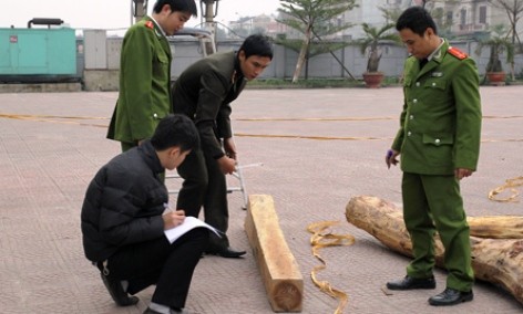 Lô gỗ trắc có số lượng lên tới 46m3 của Cty TNHH S.Đ.H. (Nghệ An) đang bị tạm giữ tại Hà Tĩnh, chiều ngày 30/12, các cơ quan, bao gồm Phòng Cảnh sát môi trường, Viện kiểm sát và Chi cục kiểm lâm tiến hành kiểm tra, cân đo lại toàn bộ số gỗ.