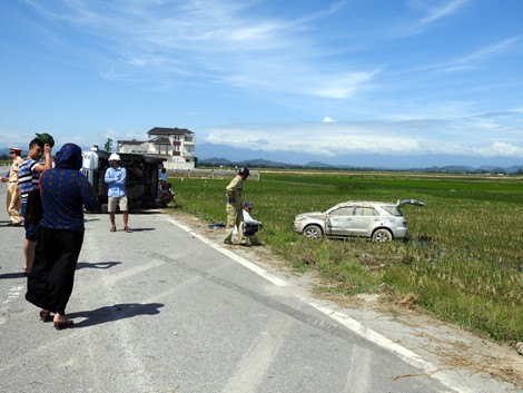 Sau khi gây tai nạn chiếc xe lao xuống ruộng.
