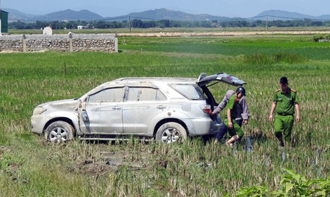 Sau khi hất văng xe CSGT, chiếc xe vi phạm lao xuống cánh đồng ven đường. Rất may, vụ tai nạn giao thông không gây thiệt hại về người.