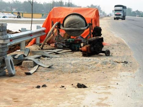 Mất an toàn tại công trường thi công quốc lộ 1A.