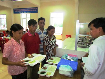 Các bệnh nhân nghèo nhận suất cơm miễn phí của Bệnh viện Đa khoa Hà Tĩnh.