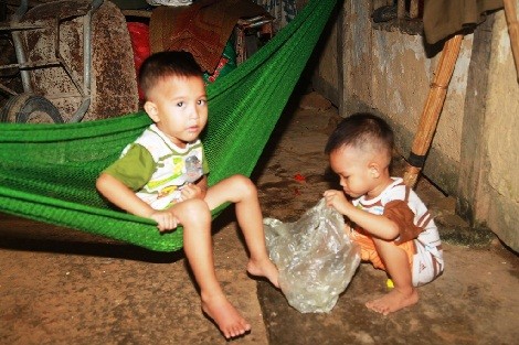 Hai đứa con thơ còn quá nhỏ chưa biết mình sắp phải chịu cảnh mồ côi vẫn hồn nhiên chơi đùa trước nhà, mà ai nhìn nước mắt cũng không thể cầm được.