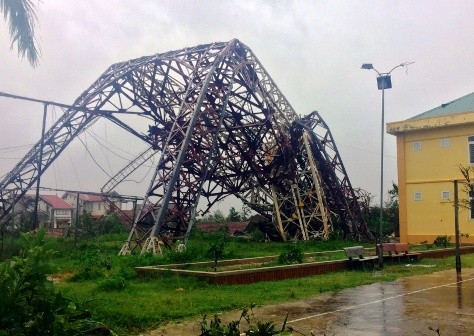 Tháp truyền hình thị xã Kỳ Anh bị Bão đập gãy.