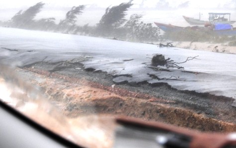 Một tuyến đường giao thông mới hoàn thiện đưa vào sử dụng chưa lâu tại Xã Kỳ Ninh, thị xã Kỳ Anh bị sóng đánh tan hoang, hư hỏng.
