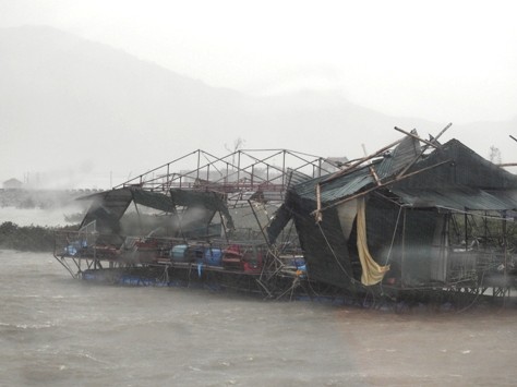 Một nhà bè bị hư hỏng hoàn toàn sau bão giữ.