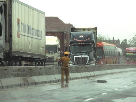 Quốc lộ 1A đoạn đi qua xã Cẩm Minh, huyện Cẩm Xuyên, bị cấy cổ tụ gãy đỗ, công tác khắc phục nhanh chóng được tiến hành.