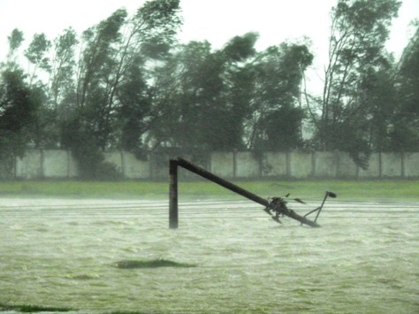 Nhiều cột điện bị bão đánh gãy ngang.
