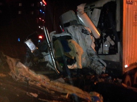 Hiện trường vụ tai nạn khiến tài xế xe contener tử vong.