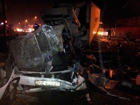 Sau tai nạn làm 2 người chết tại chổ, ít nhất có 10 người bị thương. Phần đầu hai chiếc xe bị nát, biến dạng, hư hỏng nặng.