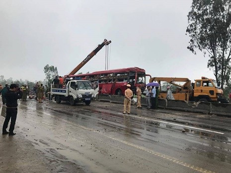 Theo cơ quan điều tra, nguyên nhân ban đầu xác định do trời mưa khiến đường có phần trơn trượt, xe khách bị mất lái đâm trực diện vào cột mốc bên phải đường. Sau đó, xe tiếp tục mất lái đâm thẳng vào dải phân cách giữa rồi lật ngửa.