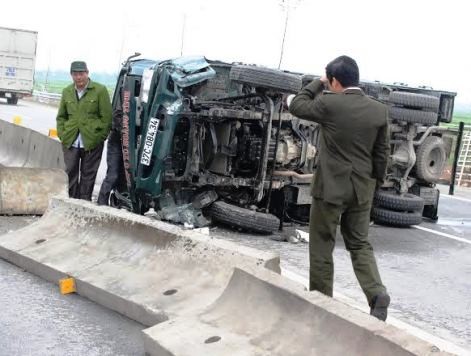 Vụ tai nạn khiến cho tài xế và một người đi cùng bị thương phải đưa đi cấp cứu, còn xe tải thì bị hư hỏng nặng.