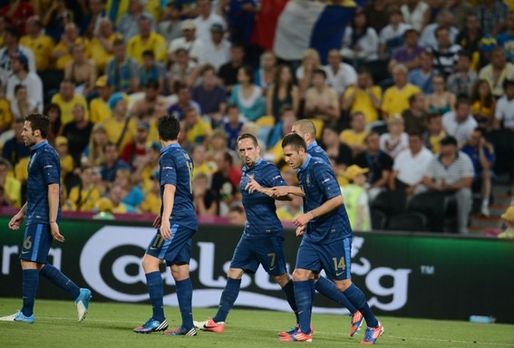 Với thế trận áp đảo, đội tuyển Pháp đã dễ dàng vượt qua đội đồng chủ nhà Ukraine với tỷ số 2-0. Jeremy Menez và Yohan Cabaye là tác giải của hai pha lập công cho Les Bleus.