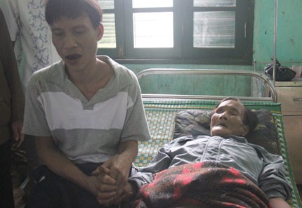 Hai cha con “người rừng” được điều trị sức khỏe tại BVĐK Tây Trà. Ảnh: ĐH