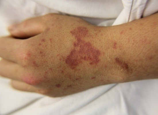 Bệnh nhân mắc bệnh viêm não mô cầu bị phát ban