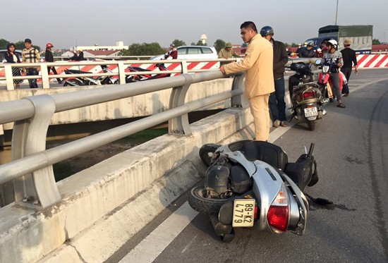 Khi đang lưu thông qua cầu vượt thì bất ngờ mất lái va chạm vào thành cầu. Cú va chạm đã khiến người phụ nữ văng khỏi xe máy và rơi từ trên cầu vượt xuống chân cầu tử vong.