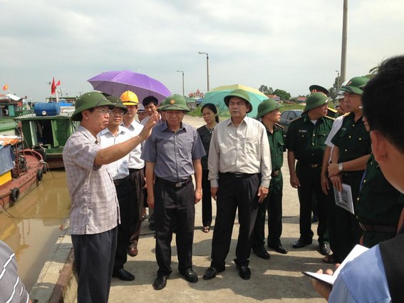 Đoàn lãnh đạo thành phố đang kiểm tra công tác phòng chống cơn bão số 5