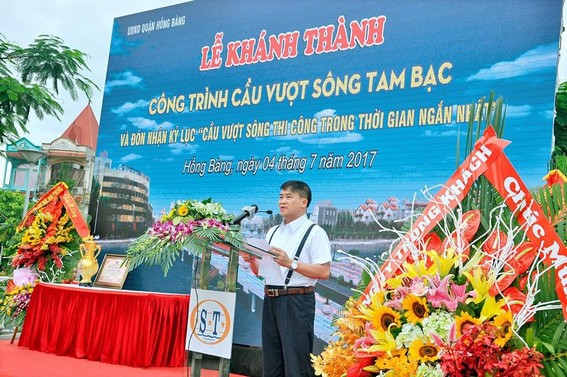 Doanh nhân Tạ Quyết Thắng Giám đốc Công Ty TNHH Sơn Trường bỏ 80 tỷ đồng xây cầu Tam Bạc tặng nhân dân thành phố Hải Phòng.