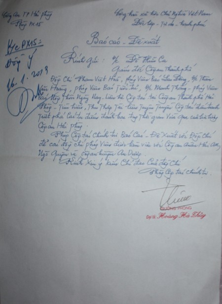 Giấy giới thiệu của Công an TP. Hải Phòng cũng trở nên vô giá trị với Công an quận Hải An.