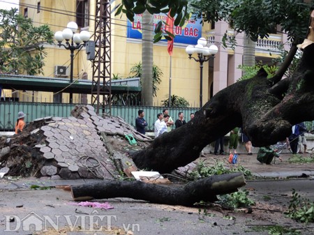 Đêm 28.10, bão số 8 đã ảnh hưởng trực tiếp TP. Hải Phòng làm thiệt hại nghiêm trọng về người và tài sản. Hầu hết các tuyến phố trong nội thành Hải Phòng đều bị cô lập do cây đổ và ngập lụt.