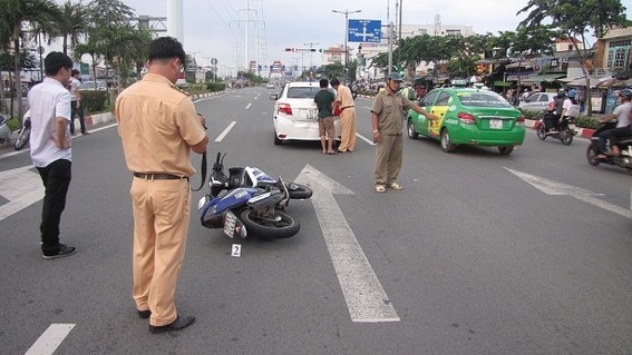 Theo thông tin ban đầu, khoảng 16h30 ngày 6/8, nam thanh niên điều khiển xe máy mang BKS: 77F1-244xx chở theo một thanh niên khác lưu thông trên đường Phạm Văn Đồng hướng từ sân bay Tân Sơn Nhất về cầu Bình Lợi trong làn xe ô tô.
