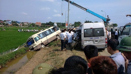 Sau khi “đối đầu” và cùng lao xuống ruộng, cả hai chiếc xe khách bị hư hỏng nặng. Theo thống kê ban đầu có ít nhất 5 người bị chết tại chỗ và 10 người bị thương trong vụ tai nạn này.