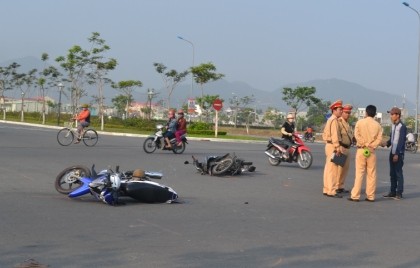 Nam thanh niên điều khiển xe máy chở theo bạn hướng về phía biển, khi tới ngã tư bất ngờ va chạm với một xe máy khác do một phụ nữ điều khiển khiến một người bị gãy chân, một bị thương nặng.