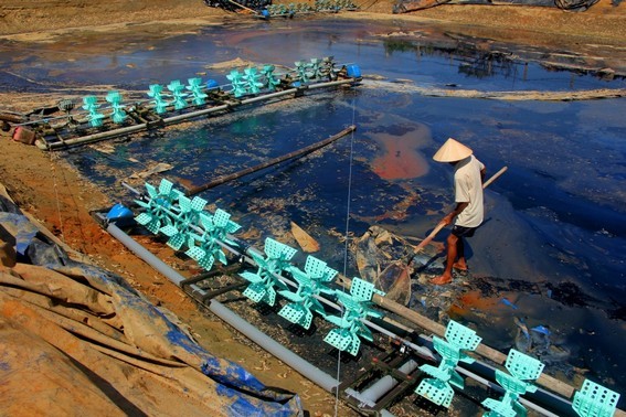 Theo thống kê sau cơn bão, tại Hà Tĩnh có 1.300ha nuôi trồng Thủy sản bị ảnh hưởng, ước tính thiệt hại lên đến 114 tỷ đồng. Ảnh Hoài Nam