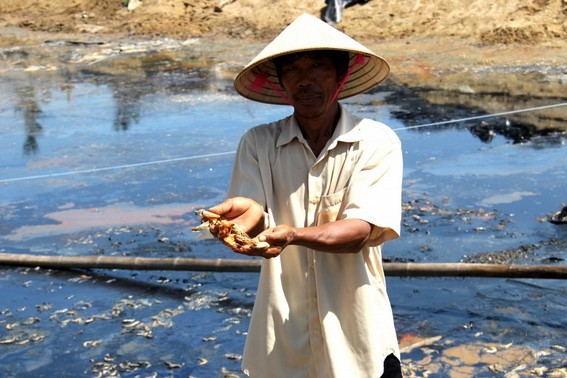 Tôm chết hàng loạt khiến nhiều người dân méo mặt vì mất trắng. Ảnh Hoài Nam
