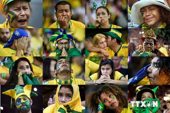 Muôn vàn nỗi thất vọng và buồn bã của các cổ động viên Brazil khi đội nhà thảm bại trước Đức. (Nguồn: AFP/TTXVN)