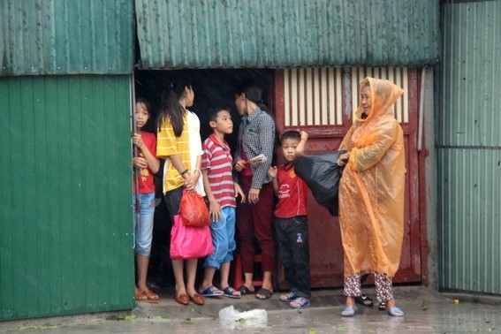 Dù đang có mưa to, gió lớn nhưng hàng nghìn người dân đang tránh trú bão tại các khu vực an toàn bất chấp nguy hiểm, thu dọn đồ đạc gọi xe trở về nhà.