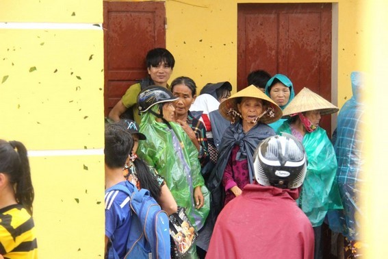 Theo những người dân tránh trú tại đây, lúc ra về các thầy giáo và cán bộ địa phương khuyên ở lại vì bão còn chưa tan hẳn nhưng vì lo cảnh tan hoang, nhà cửa đổ nát nên muốn về để thu dọn.
