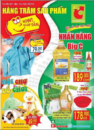 Nhằm giúp người tiêu dùng có cơ hội mua sắm những sản phẩm có mức giá tiết kiệm từ 10-70%, được kiểm duyệt chặt chẽ về chất lượng, từ 26/1 đến 12/2/2012 Big C giới thiệu đến người tiêu dùng hơn 300 sản phẩm là nhãn hàng riêng của Big C gồm nhãn hàng "Wow! Giá hấp dẫn" và "Big C".