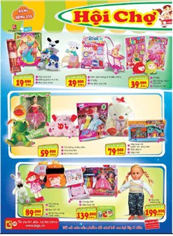Giá một số sản phẩm (tại miền Nam): Sản phẩm đồng giá 12.900đ: voi rút dây, bịch kèn; sản phẩm đồng giá 29.900đ: xe trớn 2015, vỉ 3 xe trớn, vỉ máy bay; sản phẩm đồng giá 39.900đ: hộp khủng long đường ray, vỉ đàn pin, túi chút chít,...; xe lắc con khỉ có nhạc giá 324.000đ/xe; gối gấu nhỏ giá 59.900đ/con (giảm 25%); thú nhún cao su loại 1 giá 169.900đ/con( giảm 22%);…