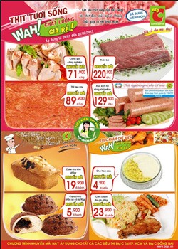 Giá một số sản phẩm (tại miền Nam): Kem đánh răng P/S White Now 100gr giá 11.900đ/hộp (giảm 40%), dầu gội Enchanteur Charming 700gr giá 116.900đ/chai (tặng 2 chai sữa tắm Enchanteur trị giá 24.000đ), bình xịt côn trùng Falcon các loại 680ml giá 49.200đ/bình (tặng kèm chai sữa tắm Maxima 200gr giá 30.500đ)...