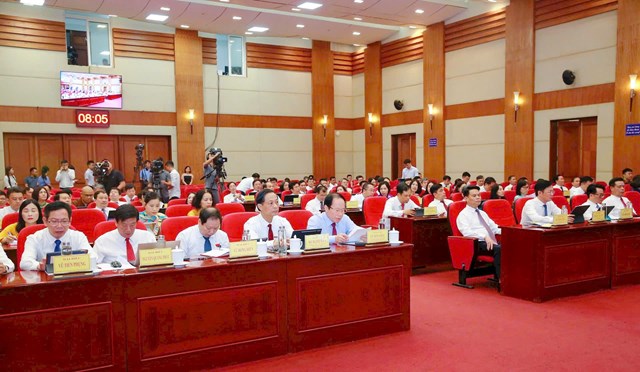 Các đồng chí lãnh đạo thành phố Hải Phòng cùng các đại biểu tham dự kỳ họp