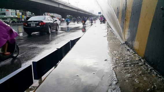 Dòng nước phun ra mạnh, nhẹ tùy thuộc vào trời mưa to hay mưa nhỏ (Ảnh Công Phương).