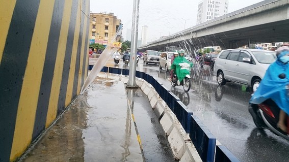 Cùng chia sẻ về vấn đề này, chị Nguyễn Thị Mai cho hay: “Tôi đang lưu thông về Linh Đàm, khi đi qua trụ cầu FR06 đã không may bị nước phun vào người và xe. Rất may, hôm nay trời mưa nên tôi, tôi mặc áo mưa sẵn nên không bị ướt”.