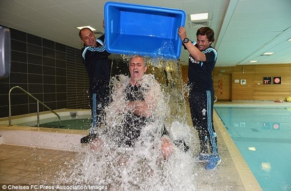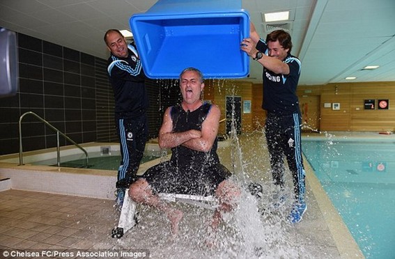 Sau khi nhận lời thách đấu từ học trò cưng Didier Drogba, huấn luyện viên Jose Mourinho đã thực hiện thử thách dội nước lạnh lên đầu (Ice Bucket Challenge).