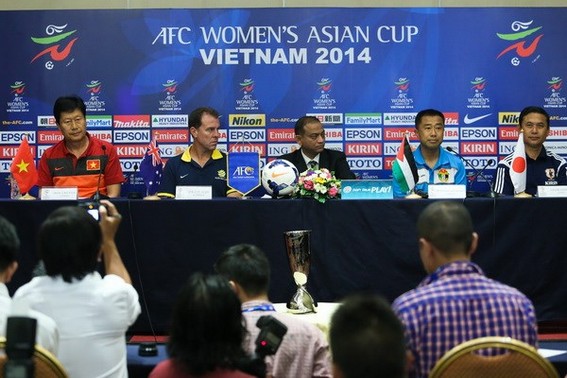 Toàn cảnh buổi họp báo giải vô địch nữ châu Á. (Ảnh: Minh Chiến/Vietnam+)