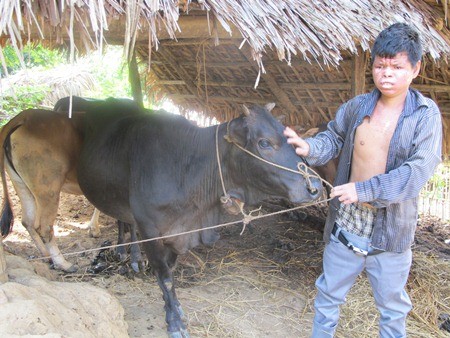 Bệnh nhân Nhất chuẩn bị đưa bò lên núi. Ảnh: Hồng Bài