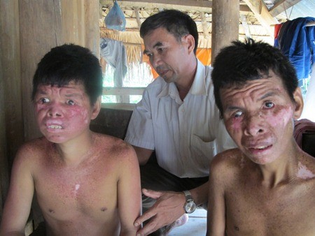 Ông Chiến cho biết: Khi sinh ra, cả 2 đứa (Thao và Nhất) đều lành lặn như các anh chị. Đến tháng thứ 3 thì bắt đầu phát bệnh; da đỏ rộp lên như bị bỏng. Đến khi 5 - 6 tuổi thì bệnh phát nặng hơn. Da bị khô, rộp lên khắp người, mắt đau, thị lực giảm.